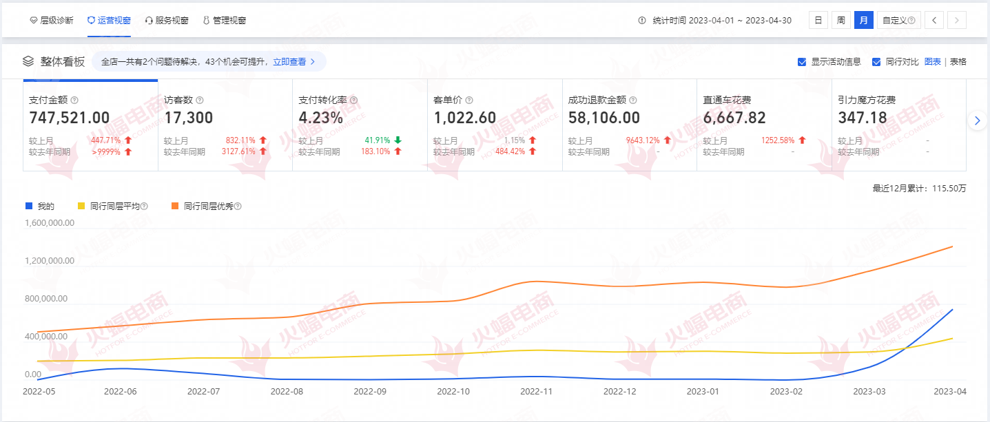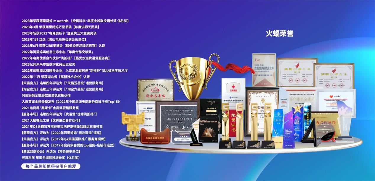 據(jù)了解,武漢火蝠電子商務(wù)有限公司(以下簡稱“火蝠電商”)就是周生(化名)選擇的代運營合作伙伴,即本次618店鋪增量的幕后推手。碰巧的是,在6月初,該企業(yè)還憑借著對美妝賽道的理解和創(chuàng)新能力,一舉斬獲2023CIBE美博會【顏值經(jīng)濟品牌運營官】重量級認證。近9年的電商服務(wù)經(jīng)驗,以店鋪代運營、爆品打造等服務(wù)見長的火蝠電商,正在成為越來越多品牌主的選擇。而其強大的“數(shù)字營銷”能力,是周生(化名)選擇合作的理由之一,也是店鋪增長的關(guān)鍵。