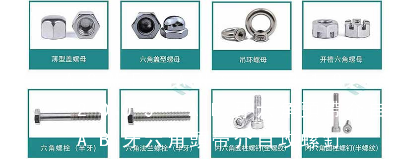 不銹鋼外六角螺絲大部分均為全牙同六角頭全牙螺栓標準:DIN933,GB5783,ISO4017,ANSIB18.2.1,JISB1180;非全牙螺栓標準DIN931,GB5782,ISO4014,ANSIB18.2.1,JISB1180。外六角螺栓標準有一個標準是級別標準,級別標準分為 B、鐵螺絲、銅螺帽(螺孔及鋁合金材料螺孔之螺定,如:*電晶體或線材端子固定于鋁散熱片上。*鋁散熱片固定于PCB上。*大電容或電晶體端子(TERMINAL)之固定螺絲。*RS-232六角銅柱之固定。C、鐵螺絲(自攻)鎖于塑膠孔。