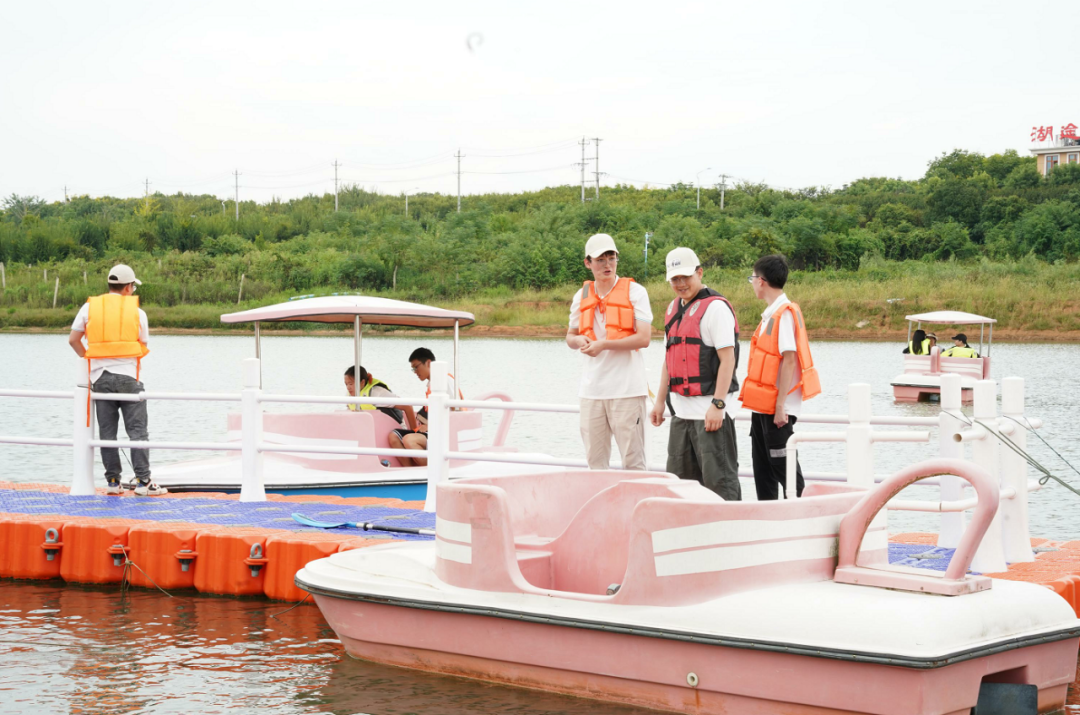 坐著悠哉愜意的腳踏船,徜徉在風景旖旎的湖面上,將藍天、綠水一覽無余地記錄下來。